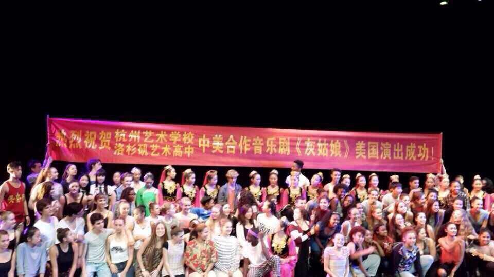 杭艺校访美的第一站是美国孔子课堂的合作学校——洛杉矶艺术高中。因两校间已有了三周年的交流经验,尤其是去年合作创编了音乐剧《灰姑娘》,并在中国杭州和第七届全美中文大会开幕式上(洛杉矶)成功演出之后,更加深了两校师生的情感和了解,此次交流、教学研讨等活动显得更是驾车就熟。同学们从结对子家庭寄宿、跟班学习交流,一直到交流演出,都是非常融洽和顺利,尤其是在两校间的合演项目音乐剧《灰姑娘》的演出过程中,将这3天的活动推向了一个新的高潮。